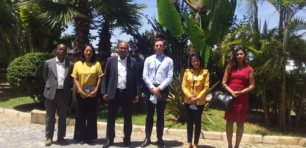 Les représentants de TOP Madagascar, dirigés par son PCA Mr Jonah RAMAMPIONONA, ont eu l’honneur de rencontrer Mr Julien COFFINIER, nouveau DG de Ravinala Airports, à Ivato, le 03 février 2022.